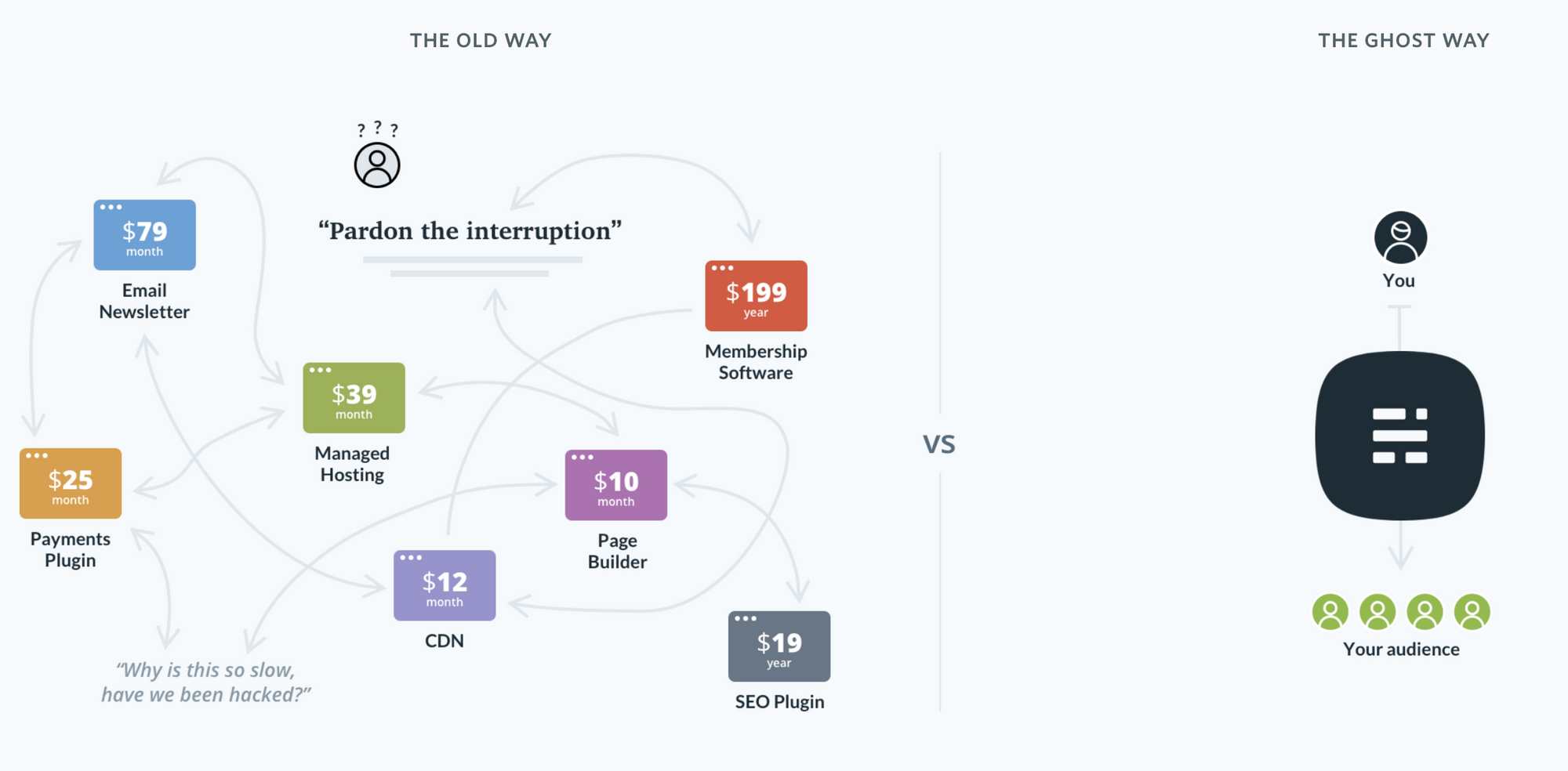 Ghost is a non profit platform that specifically targets content creators. Once I started researching I realized that it fit the bill perfectly. A simple interface with a large amount of publishing based themes and an endless amount of integrations with other platforms made it a clear choice. I made my decision and opted for their yearly Basic subscription plan at a cost of $349.